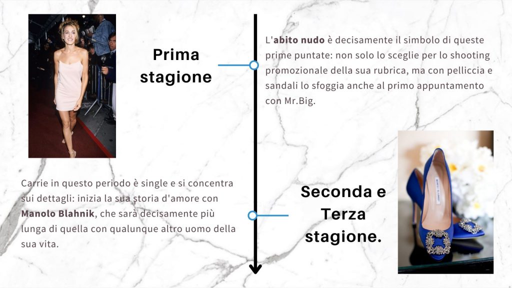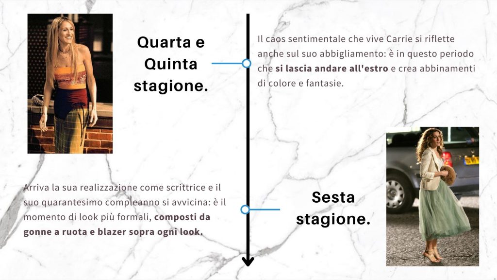 Nel corso delle sei stagioni di Sex And The City, dei due film e della serie sequel, vediamo gli outfit di Carrie cambiare con lei e adattarsi alla sua vita.