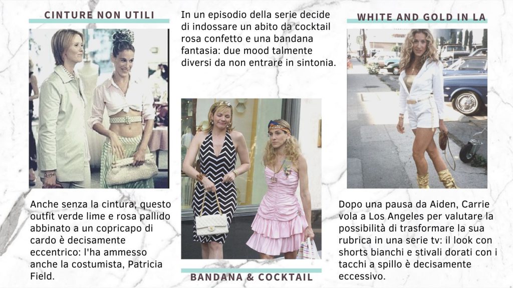 Non di solo outfit meravigliosi si è vestita Carrie: è innegabile che in sei stagioni abbia commesso qualche piccolo “orrore”. Ho selezionato sei look che mi hanno lasciato a bocca aperta… anche se non in senso positivo.