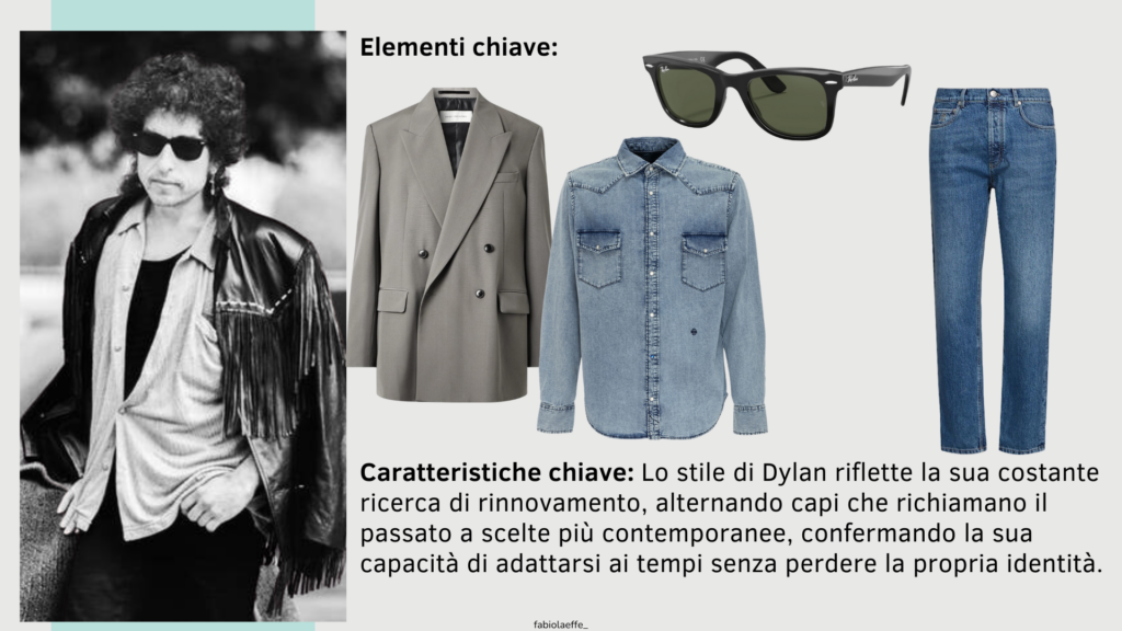 Ripercorrere i look di Dylan significa non solo esplorare la storia di un’icona musicale, ma anche comprendere come la moda possa essere uno strumento potente per comunicare identità, ribellione e trasformazione.