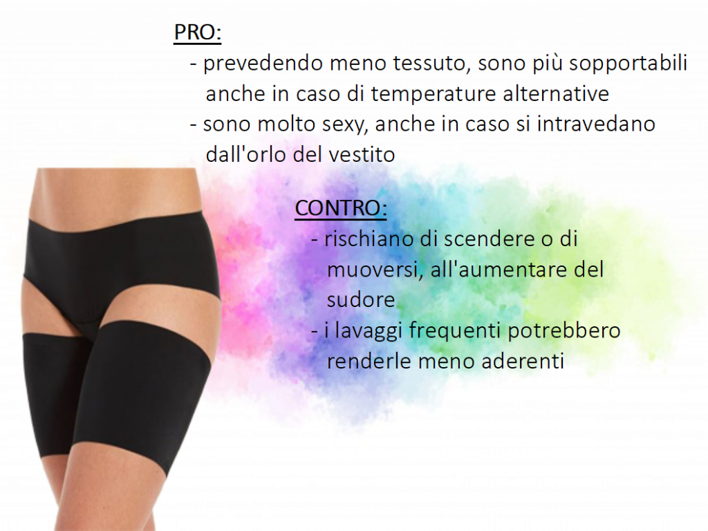 Un’alternativa ai pantalonicini sono le Bandelette, delle fasce da indossare come fossero autoreggenti ma che hanno lo scopo di fare da barriera tra la pelle della coscia destra e quella della sinistra.