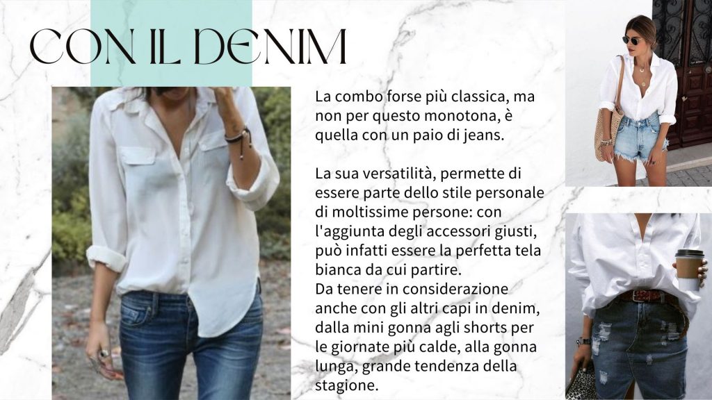 Spesso si tende a relegare la camicia bianca all’abbigliamento d’ufficio, che può essere indossato solo in contesti semi-formali e formali. La sua semplicità, invece, la rende versatile e perfetta per tutti i contesti.