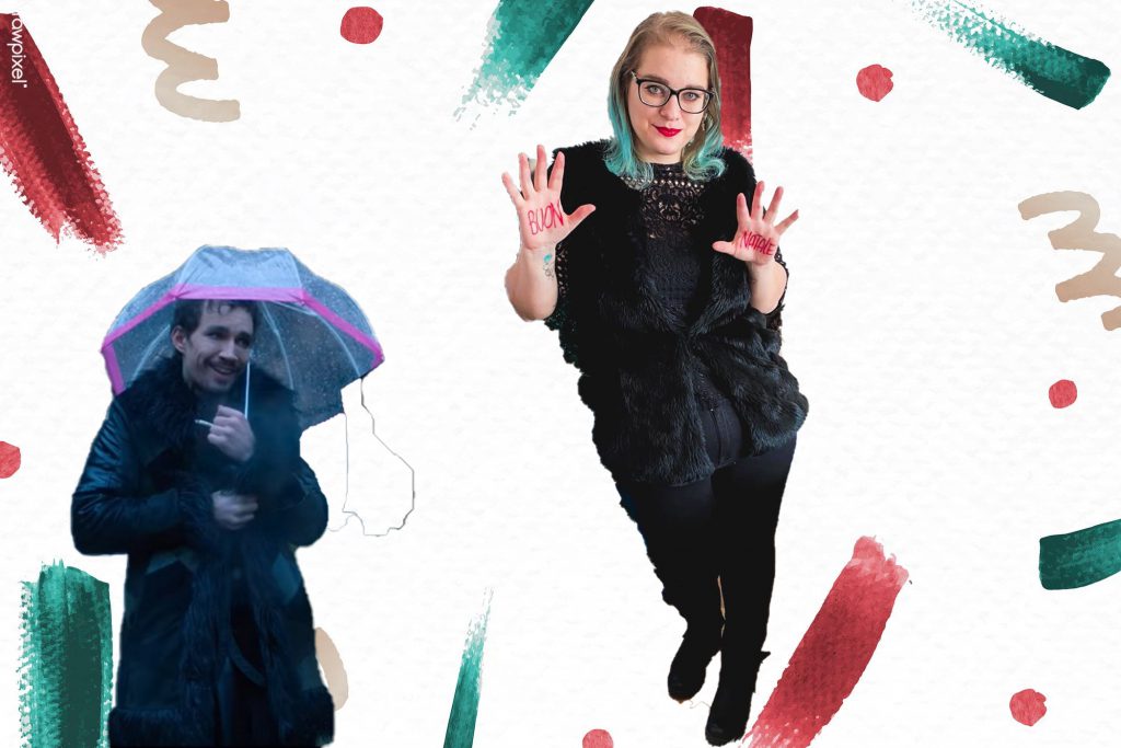 Concludo con un outfit decisamente fuori dal comune: un look ispirato a Klaus, il mio fratello preferito tra quelli della Umbrella Academy! Nella serie TV è a petto nudo, io ho pensato di riadattarlo alla situazione indossando una maglia in pizzo: va bene il Natale casalingo, ma pur sempre fashion!