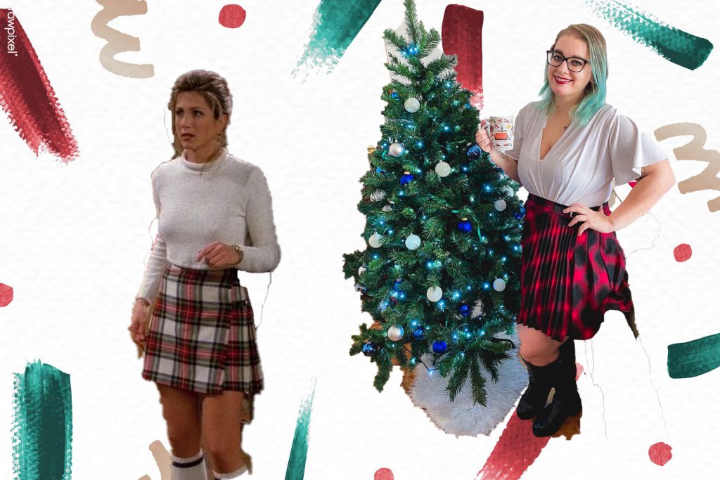 Partiamo con uno dei miei outfit preferiti direttamente da una delle mie serie TV preferite. Il look è molto semplice ma con i colori tipici delle festività natalizie. Il tartan rosso della gonna e il bianco candido del maglioncino. Ma attenzione, il rischio è quello di sporcarsi tra una forchettata e l’altra del pranzo casalingo ma pur sempre da festa!