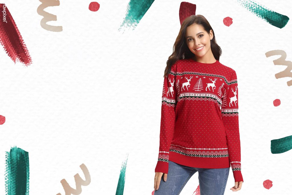 Cominciamo con un maglione classico, rosso con disegni a tema sul bianco. Lo trovo perfetto per rendere meno noioso questo martedì in smartworking. Stai andando in ufficio? Se l’ambiente non è troppo formale, indossalo, magari con un pantalone nero e uno stivaletto!
