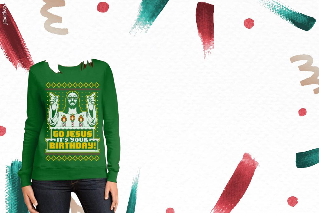 Che tu stia facendo ponte o sia al lavoro, l’atmosfera natalizia comincia a farsi sentire e a farsi leggermente… dissacrante. Per un lunedì da far ingranare bene (o da svoltare) indossa un maglione verde che ricorda a tutti che il compleanno più importante dell’anno sta arrivando.
