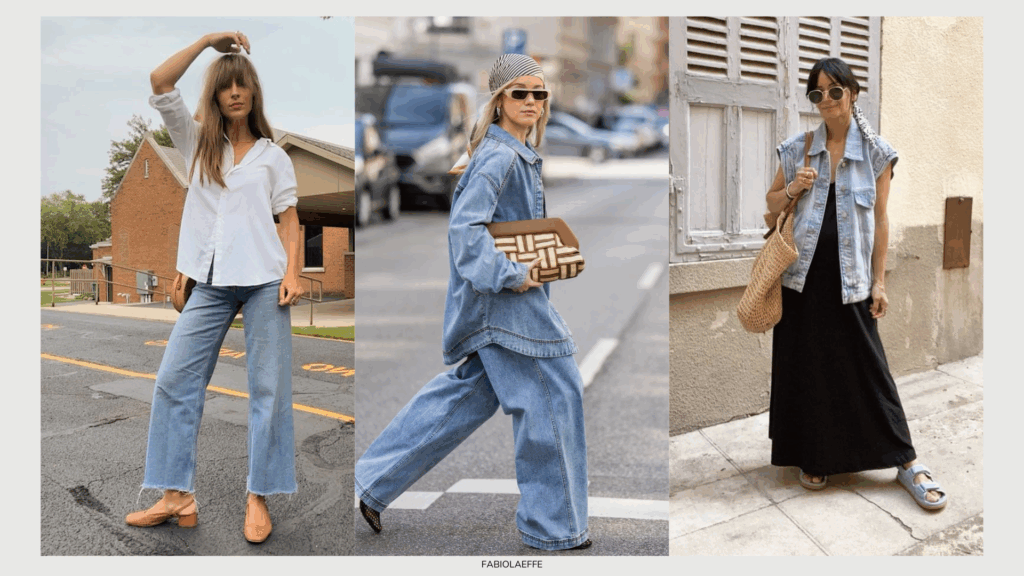 In Europa, invece, il denim è diventato simbolo di ibridazione tra eleganza e ribellione. Le maison di lusso lo hanno reinterpretato con tagli sartoriali e dettagli sofisticati, mentre lo streetwear ne ha fatto una tela urbana, spesso destrutturata e provocatoria. In paesi come l’Italia e la Francia, il denim si muove tra haute couture e cultura pop, mantenendo il suo DNA pratico ma rivestendosi di nuove intenzioni stilistiche.