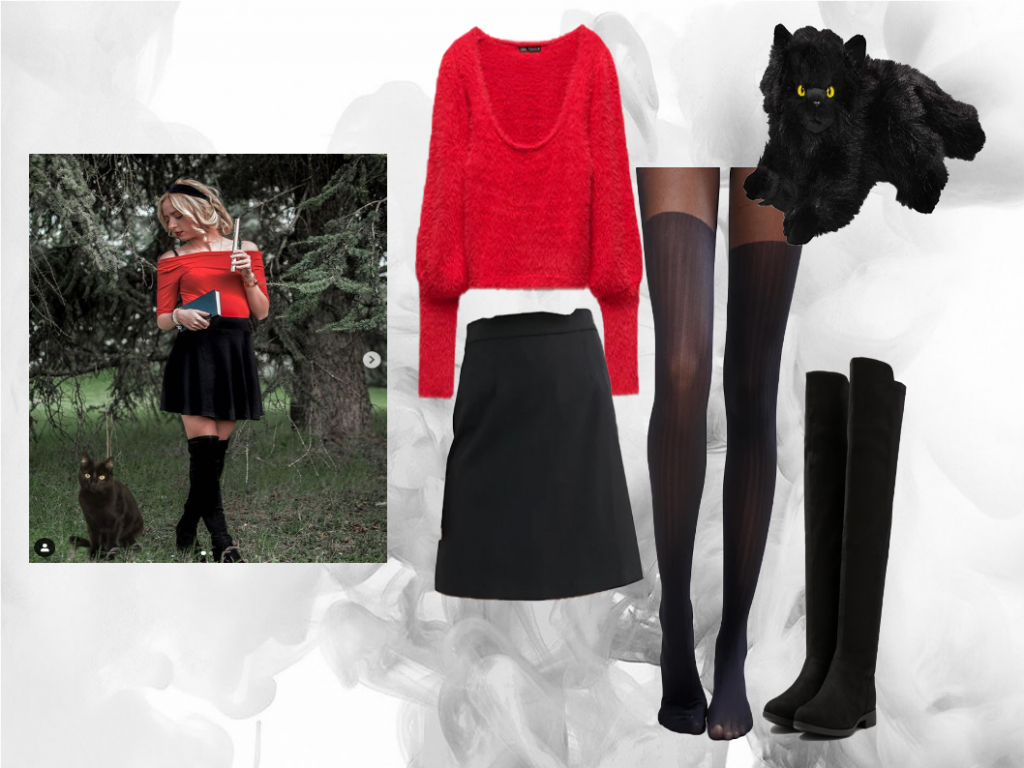 Dopo tre serie TV che ho amato, concludiamo con una serie TV che ho iniziato appena uscì ma che ho anche abbandonato poco dopo: vorrei però riprenderla perchè ne ho sentito parlare benissimo. Nel frattempo, possiamo ispirarci a due suoi look per una cenetta di Halloween casalinga: una gonnellina a pieghe nera abbinata a una maglietta rossa. Il vero tocco di classe? Un gatto nero che impersoni Salem, il famiglio della protagonista.