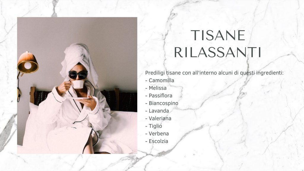 - Concludi la serata con una tazza di tisana bollente, o un calice di vino se preferisci, e guastatela davanti alla tua serie TV preferita o a un buon libro.