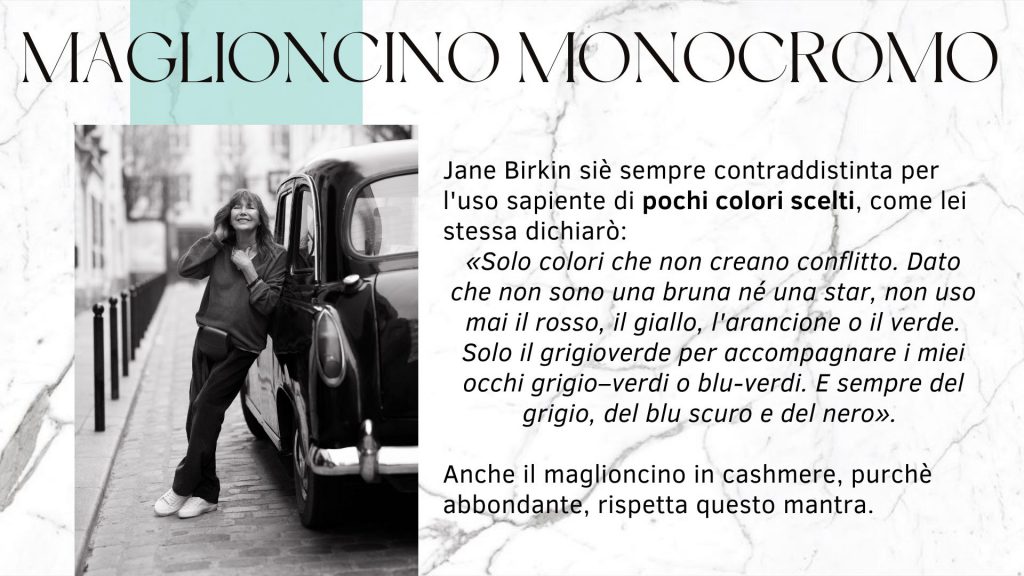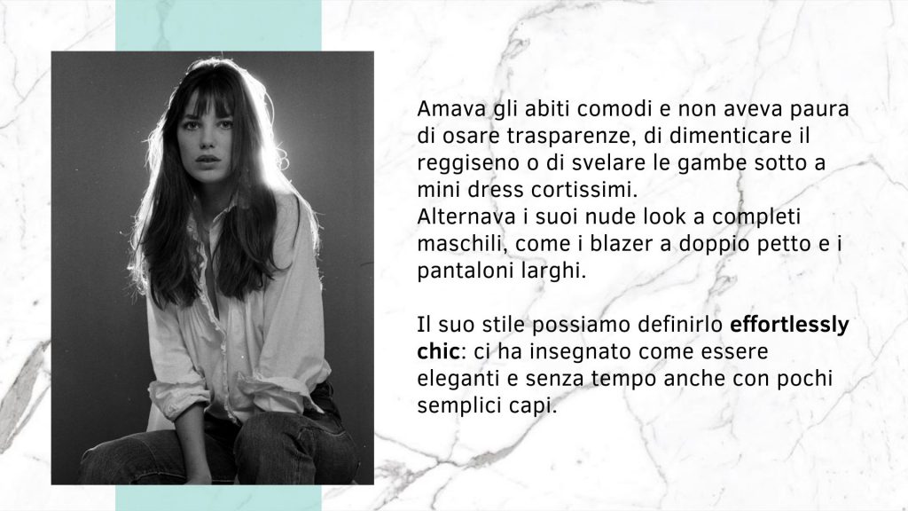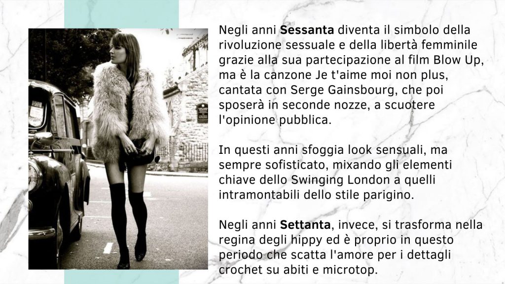 Lo stile della Birkin ha superato la prova del tempo: i suoi look, infatti, possono essere riprodotti con facilità e da tutte le tasche, mantenendo sempre l’allure chic che tanto la contraddistingueva.