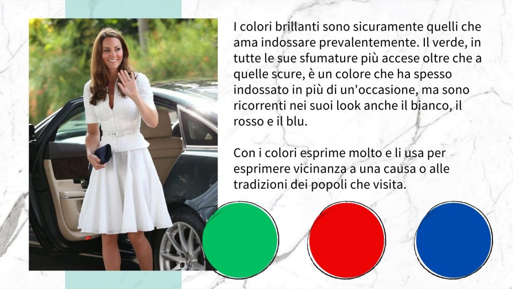 Ora che sappiamo cosa c’è dietro ai look di Kate, chi li studia e quali sono le motivazioni che guidano le sue scelte, analizziamo quali capi e accessori sono ricorrenti.