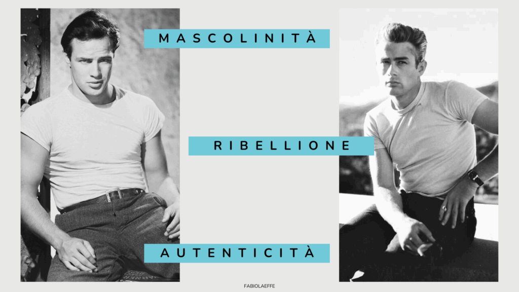 Negli anni ’50, la t-shirt bianca entra nel mito. Marlon Brando in “Un tram che si chiama desiderio” e James Dean in “Gioventù bruciata” la trasformano da biancheria in oggetto del desiderio. Aderente, leggermente sgualcita, resa sexy dalla luce del bianco sul corpo. Diventa simbolo di mascolinità ribelle e autenticità. La t-shirt non è più solo un capo: è un messaggio.