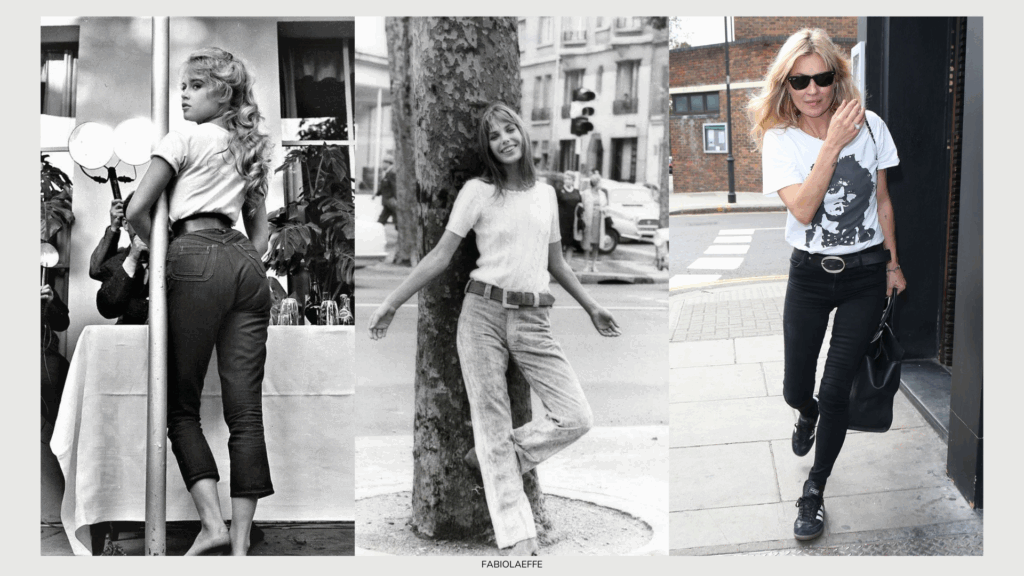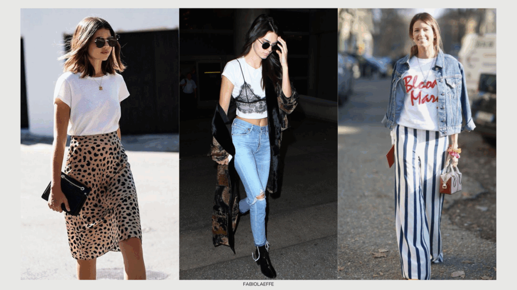 Anche la moda femminile si appropria del capo: Coco Chanel è tra le prime a sdoganare l’uso del jersey nella moda donna. Ma sono Brigitte Bardot, Jane Birkin e Kate Moss a darle un’impronta di sensualità rilassata, scomposta e naturale. La t-shirt bianca diventa il simbolo dello stile effortless: quello che non sembra studiato, ma funziona sempre. Il bianco diventa arma segreta di chi non vuole gridare, ma sa stare.