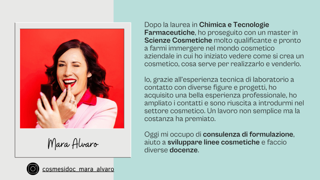Formulatrice cosmetica, divulgatrice e docente, Mara ha costruito una community fedele grazie al suo linguaggio tecnico ma accessibile, diventando un punto di riferimento nel settore beauty.