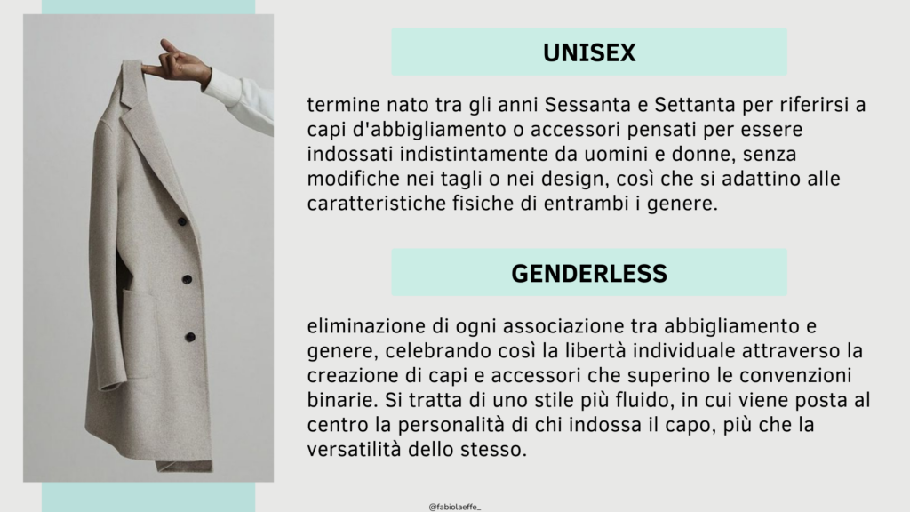 Nonostante spesso vengano usati come sinonimi, ”genderless” e “unisex” sono concetti diversi, usati per indicare abbigliamento e approcci distanti tra loro.