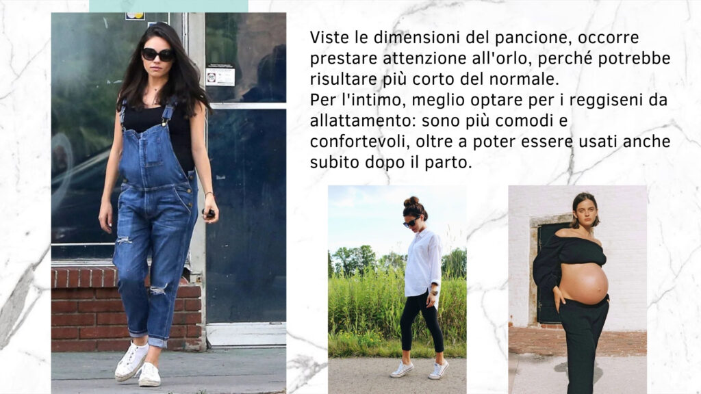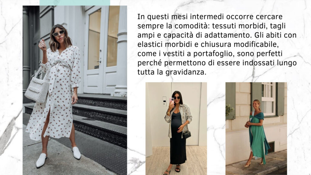 Come abbiamo visto, ogni fase della gravidanza (e ogni stagione) ha dei capi che risultano essere più funzionali di altri, scopriamoli insieme nel dettaglio.