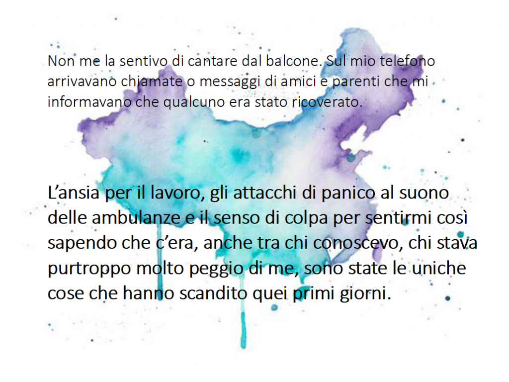 Mi sono sempre considerata una persona dal carattere particolare e non ho mai avuto problemi a trascorrere del tempo “isolata” dal mondo, per questo sono rimasta stupita della mia reazione iniziale a questa situazione. Anche questo silenzio che i primi giorni mi ha inaspettatamente spaventato, però, mi ha insegnato un nuovo modo di ascoltare me stessa e ciò che mi circonda.