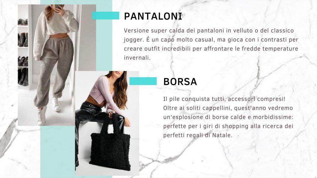 Da quando la pandemia ha stravolto le nostre vite, tutte le case di moda hanno modificato il proprio percorso: sono comparse sempre più linee morbide e comode. Per quest’inverno hanno ripescato il pile direttamente dall’abbigliamento sportivo per renderlo super fashion e attuale!