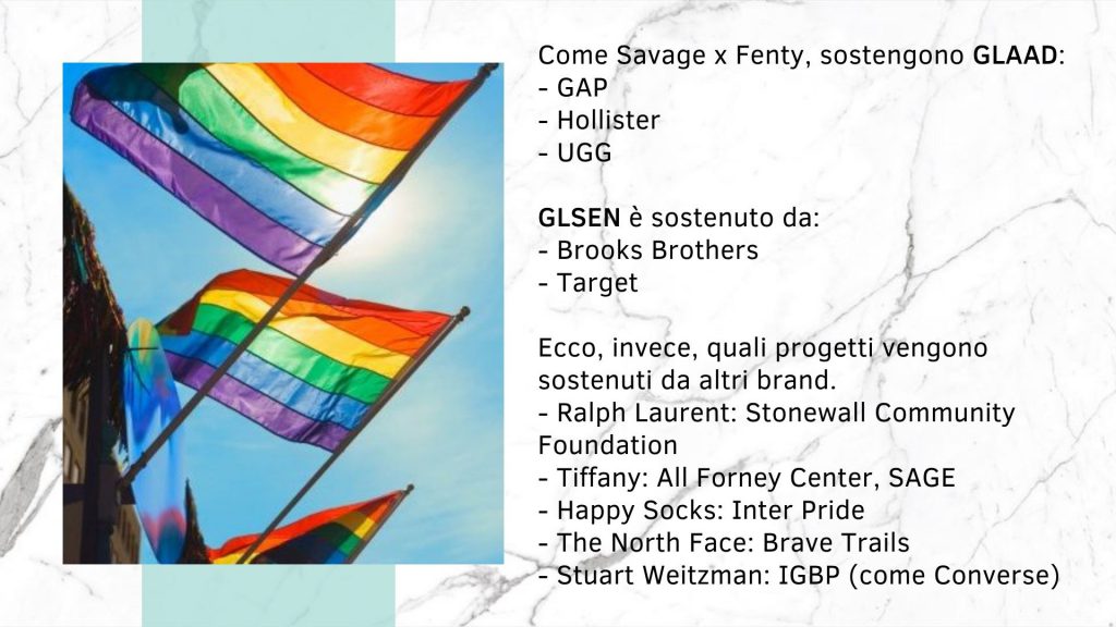 Ci sono anche brand che hanno deciso di supportare altre organizzazioni che svolgono attività fondamentali per la sensibilizzazione sulle tematiche LGBTQ+ ma anche per la salvaguardia degli appartenenti alle comunità.