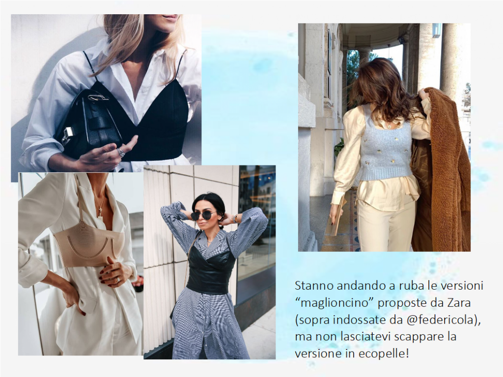 Se seguite qualche influencer, avete già visto questo trend spopolare. In cosa consiste? Nell’inversione dei “normali strati”: il top in stile bralette viene indossato sopra a camicie voluminose, puntando tutto sui contarsti.