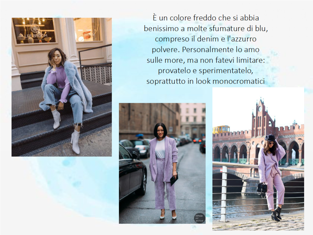 Un altro colore che sicuramente vedremo tantissimo è il viola, sia nelle sue versioni più scure che in quelle più chiare, come il lilla.