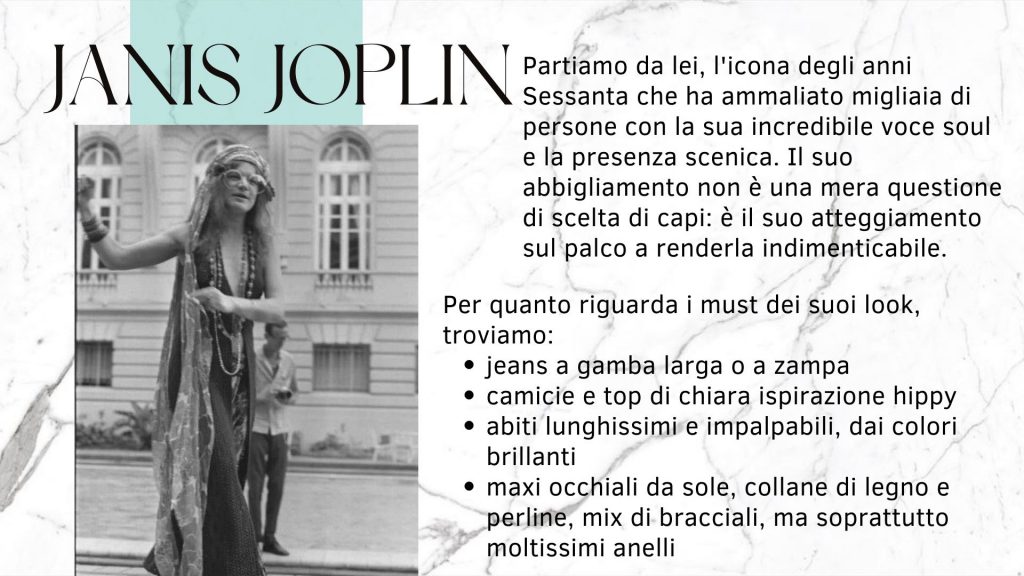 Dagli anni Cinquanta ad oggi moltissimo è cambiato sia a livello musicale che nel campo dell’abbigliamento. Ho scelto cinque musiciste di periodi diversi e ne ho analizzato lo stile personale.