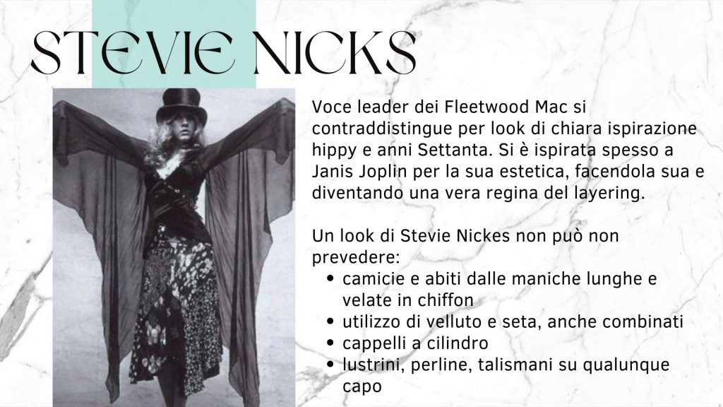 Il suo stile viene spesso ripreso come modello dalle amanti dello stile bohemien, quello che tanto va di moda durante l’estate e festival come il Coachella.